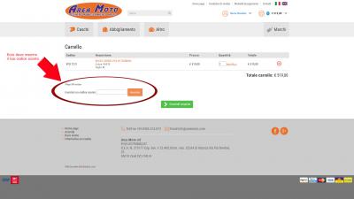 I codici sconto sono dei codici composti da numeri e lettere che, inseriti nell'apposito spazio presente all'interno del carrello, danno diritto ad uno sconto pari al valore indicato nel codice stesso.