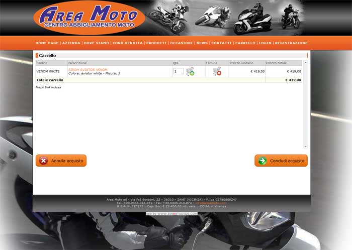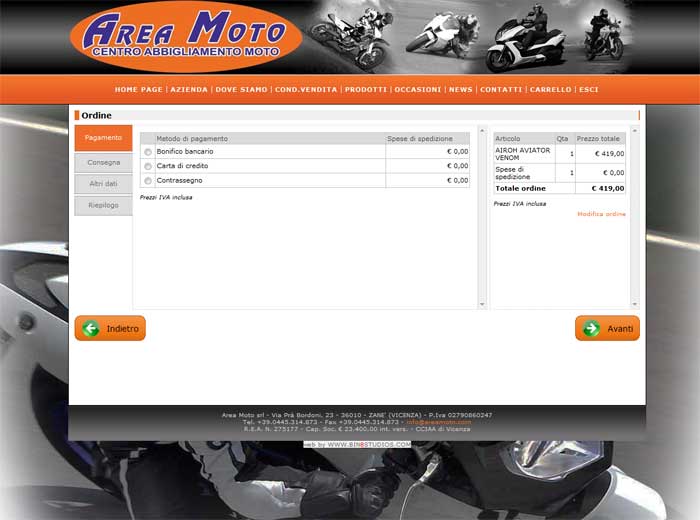 E' on-line il nuovo sito web area moto con la sezione vetrina che permette l'acquisto direttamente via internet dei vostri prodotti preferiti !!!!
