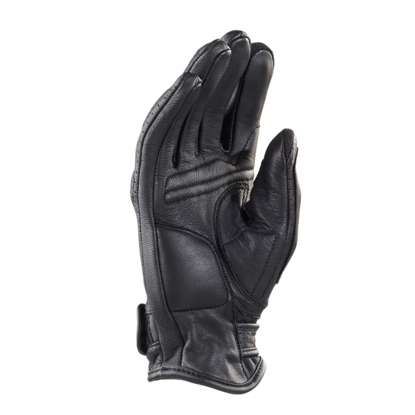 Imbottiture su nocche Imbottiture su dita imbottiture su palmo cinturino di chiusura polso elasticizzato soffietto elasticizzato su dorso soffietto elasticizzato su dita Fori di ventilazione su dorso Touch screen compatibile su dito indice e pollice.